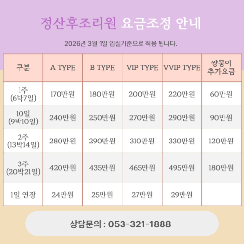 엄마와 아이에 대한 풍부한 지식과 경험을 바탕으로산모와 아기를 직접 돌보고 있습니다.오로지 엄마와 아이의 건강만을 생각하며진정한 사명감과 편안함, 그리고 따스함을제공해 드리기 위해 최선을 다하고 있습니다.